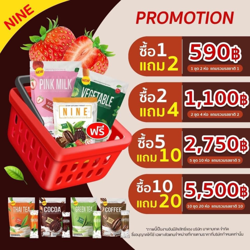 พร้อมส่งทุกรสชาติจ้า ✨🎀🦌 น้ำชงไนน์ ดื่มเพลิน เบรินหุ่น อร่อยทุกรส ผอมทุกรส ลงแน่นอน ลดน้ำหนัก - คุมหิว ดีมาก ตัวนี้ขายดี ✨30 ซอง✨ โปรโมชั่น💥💥 1 แถม 2 เหลือเพียง 5️⃣9️⃣0️⃣ 💥💥