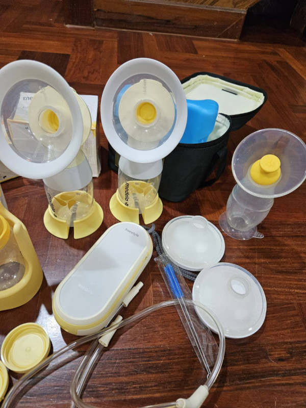 MEDELA FREE STYLE FLEX ทั้งเซ็ตตามรูป ฿9999 ส่งฟรี จากราคาเต็ม 3x,xxx ค่ะ 1. เครื่องปั๊มนม medela free style flex 2. สายยางสำหรับปั๊ม 1 3. กรวยปั๊มนม รุ่น personal fit ขนาด 24 mm จำนวน 2 คู่ 4. กรวยยางซิลิโคนขนาด 24 mm พร้อมฝา 1 คู่ 5. ฐานรองขวด 1 คู่ 6. ฐานรองขวดคู่ 1 ชิ้น 7. ซิลิโคนสูญญากาศรองรับน้ำนมพร้อมฝาปิด 1 ชิ้น (แถมฟรี) 8. ขวดนม BPA free ขนาด 5 Oz. จำนวน 3 ขวด ( ยังไม่ได้แกะใช้เลย) 9. ขวดนม BPA free ขนาด 5 Oz. จำนวน 4 ขวด 10. ขวดนม BPA free ขนาด 8 Oz. จำนวน 3 ขวด 11. กระเป๋าเก็บความเย็นพร้อม ice pack ( ยังไม่เคยใช้เลย) 12. กระเป๋าสะพายเพื่อใช้บรรจุอุปกรณ์ ( ยังไม่ได้แกะใช้เลย) 13. ถุง micro-steam สำหรับทำความสะอาดอุปกรณ์ปั๊มนม 4 ถุง ( แถมฟรี)