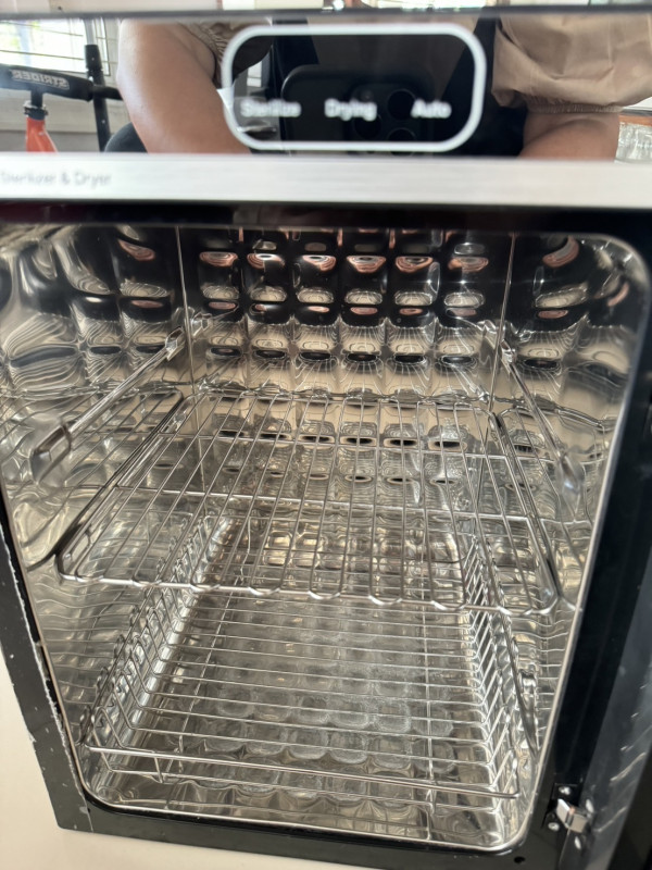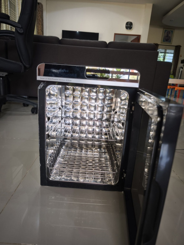 เครื่องฆ่าเชื้อและอบยูวี SAKER0112-XL 3in1 ขจัดเชื้อโรคในอุปกรณ์เครื่องใช้ ที่เป็นอันตรายต่อลูกน้อยของคุณ ไม่ว่าจะเป็นจุกนมปลอม จุกขวดนม หรือขวดนม ด้วย เครื่องฆ่าเชื้อและอบยูวี 3in1 จากแบรนด์ SAKER ที่สามารถฆ่าเชื้อโรค อบแห้ง และระบายกลิ่นไม่พึงประสงค์ได้ในเครื่องเดียว พร้อมทั้งยังใช้หลอด UV-C ในการฆ่าเชื้อโรค สามารถฆ่าเชื้อโรคได้ 99.99% ตัวเครื่องด้านในออกแบบเป็นรูปทรง Diamond และมีตะแกรงด้านในที่ผลิตจากสเตนเลส 304 ช่วยสะท้อนรังสี UV-C แบบ 360 องศา ฆ่าเชื้อโรคได้อย่างทั่วถึง นอกจากนี้ก็ยังสามารถฆ่าเชื้ออุปกรณ์ต่างๆ ที่เสี่ยงต่อการปนเปื้อน หรืออุปกรณ์อิเล็กทรอนิกส์ เช่น โทรศัพท์มือถือ ได้อีกด้วย นับว่าเป็นตัวช่วยในการทำความสะอาดเพื่อสุขอนามัยที่ดี ช่วยลดโอกาสจากการสัมผัสสิ่งปนเปื้อนที่มีขนาดเล็กจนไม่สามารถมองเห็นได้ด้วยตาเปล่าได้อย่างมีประสิทธิภาพ วิธีใช้งาน ใช้อบแห้ง ฆ่าเชื้อขวดนม หรือของใช้เด็ก นำสิ่งของที่ต้องการฆ่าเชื้อโรคใส่ในตู้อบ กดปุ่มเลือกโหมดการทำงานที่เหมาะสมกับสิ่งของนั้น ๆ